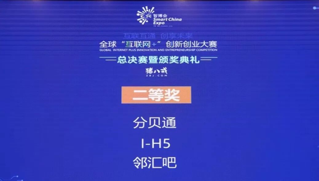 本次大赛设置一等奖1名,二等奖3名,三等奖6名,入围奖10名。经过海选、初赛、线上投票、复赛层层选拔,10支队伍入围大赛决赛。经项目路演、现场答辩、专家评审现场打分,邻汇吧从众多项目中脱颖而出,与分贝网、iH5并列获得本届全球「互联网+」创新创业二等奖。一等奖由最强大脑选手申一帆带领的图样教育团队获得。